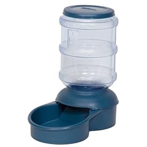 The Petmate Le Bistro 5# Feeder, automatic feeding with flair! Tough plastic base holds food reservoir for food "on demand." Supplies pet with food while owners are away. Please be certain someone still visits your furry friend daily! Planet blue food bowl with translucent blue food bin.